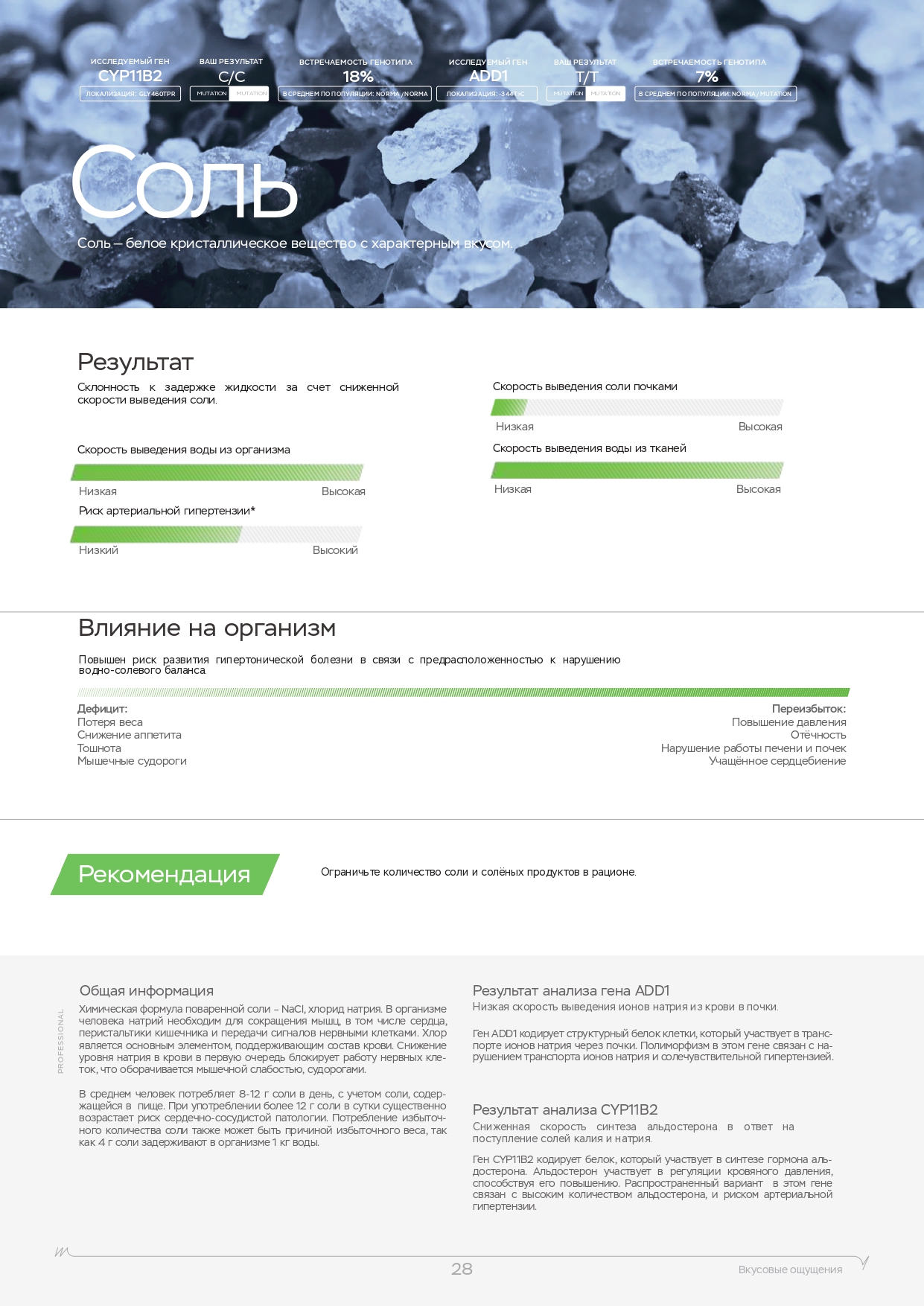 Данный ДНК-тест анализирует следующие важные параметры: